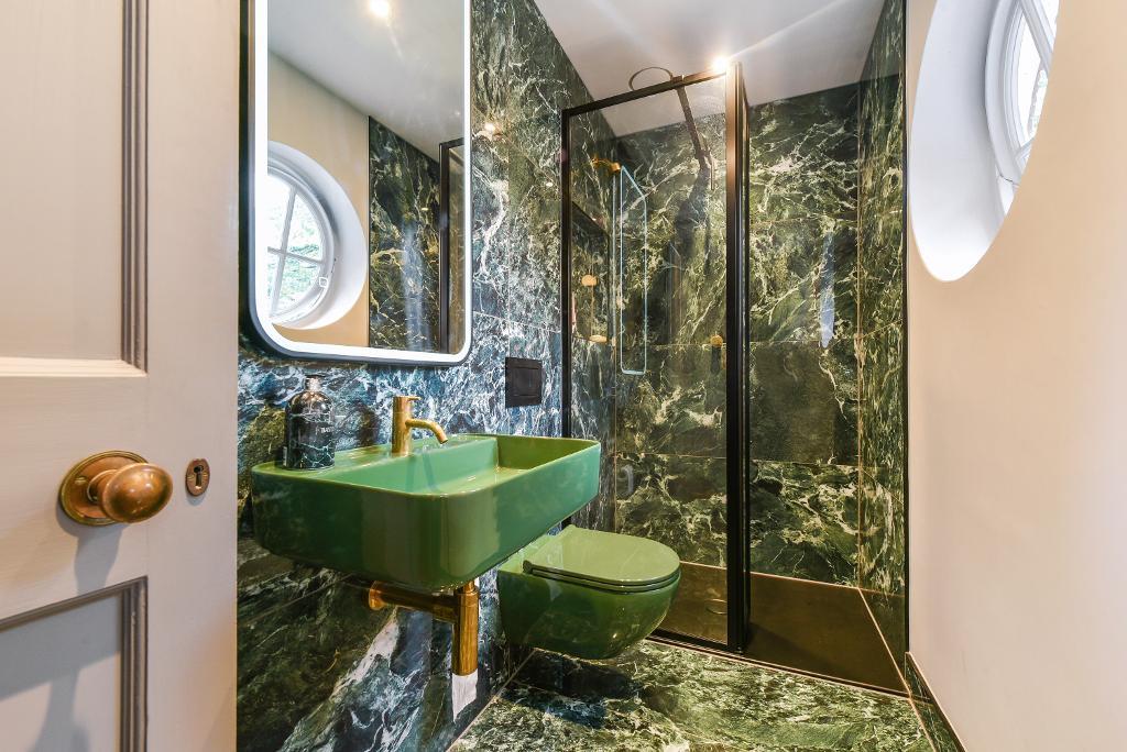 Shower Room 2 - High quality fittings with Mandarin stone green marbled porcelain tiles. Large shower area, washbasin and WC. Porthole window. Underfloor heating.