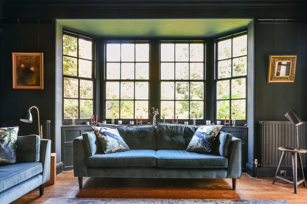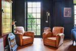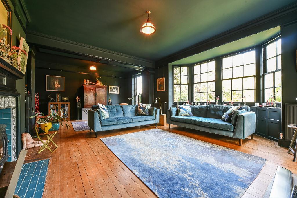 Sitting Room - Bay window and double-hung sash window overlooking the gardens. Fine fireplace with tiled hearth and fitted Franco Belge log burner. Original timber floorboards. Fitted storage cupboards. French doors to: