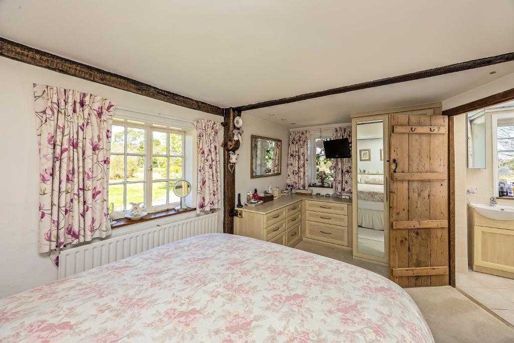 A delightful, detached Grade II Listed house and substantial outbuilding set in about one third of an acre in this idyllic country setting. This attractive period home dates back to the 18th century with brick and tile hung elevations and timber casement windows under a pitched and tiled roof. The house has been in the same ownership for over 30 years during which time it has been carefully maintained and enhanced with the addition of a substantial detached outbuilding arranged as a double car port and large workshop with studio room above. Internally there are exposed timbers, a particularly spacious open plan sitting room with feature fireplaces. There is oil fired central heating and photovoltaic cells provide a valuable energy source.