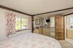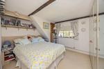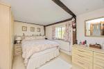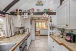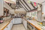 Kitchen - 17'8" x 8'8" (5.40m x 2.65m) A charming room with vaulted ceiling and exposed timbers. Double aspect. Overlooking the rear garden. Tiled work surfaces with inset sink unit. Range of cupboards and drawers and matching wall units. Integrated refrigerator. Double oven. Twin-plate electric hob and electric Aga. Additional work surface and storage units. Tiled flooring. Stable door to garden.