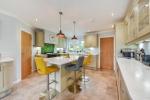 Kitchen/Dining Room - 24'11" x 14'9" (7.59m x 4.50m) Spacious double-aspect room fitted to an exceptional standard with Karndean flooring and recessed ceiling lighting. Extensive range of Corian work surfaces with inset Villeroy and Boch twin sink. Fitted three-oven, twin-plate AGA with glazed upstand and central island comprising breakfast bar with fitted drawers, wine cooler and wine rack beneath. Comprehensive range of matching base and wall units. Larder cupboard with racking system. Integrated fridge and freezer. Integrated waste disposal and recycling bin. Integrated dishwasher. Matching wall units with glazed display cabinet. Further unit with fitted shallow and deep drawers with corner storage units. Door to utility room.