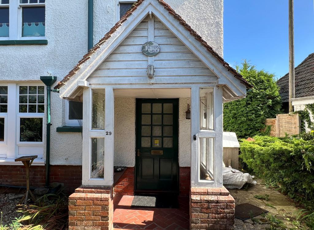 An attractive and individual detached house built in the early part of the 20th Century of traditional construction with painted pebbledash elevations under a tiled roof. The house occupies a generous plot with a secluded rear garden and there are some fine views to the ridge of the Downs. With feature fireplaces, original picture rails and panelled doors, this is a welcoming family home with two good reception rooms and an adjoining spacious terrace overlooking the gardens. There is gas-fired central heating to radiators, and kitchen and bathroom fittings are relatively modern but a buyer will see the opportunity to further modernise to suit their needs. Outside, the gardens are mature with a good degree of seclusion and sufficient space for a home office building or safe space for children. There is no ongoing chain.