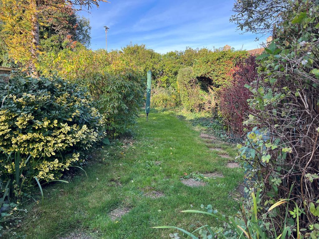 Rear Garden - Paved section adjoining the rear of the house with long lawned area beyond. Stepping stone pathway with borders containing a good variety of established shrubs. Garden shed. Outside tap.