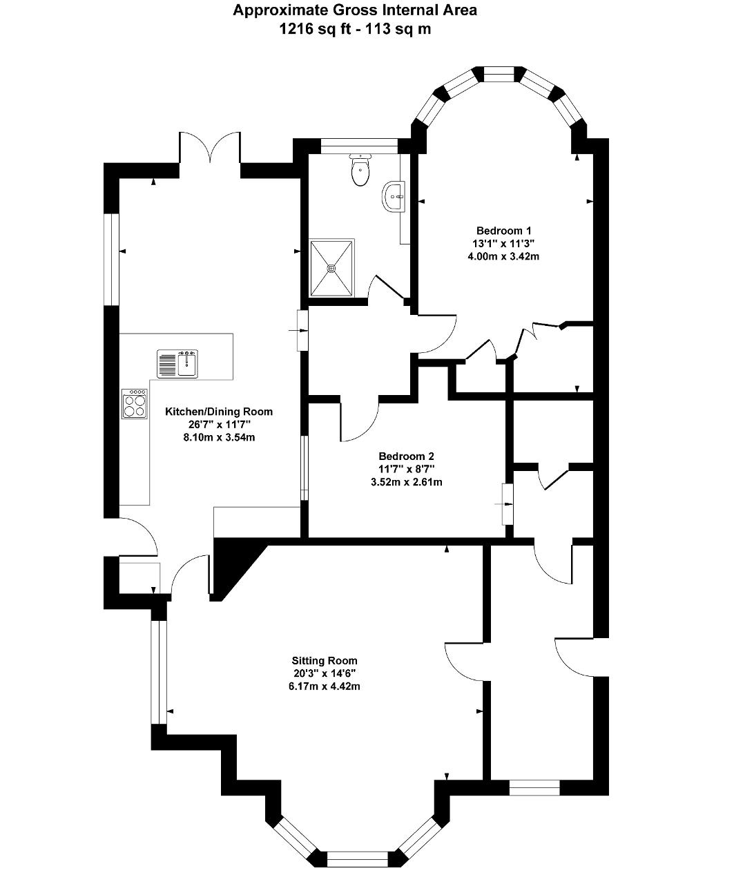 Bedroom 1 - 13'1" x 11'3" (4m x 3.42m) Double aspect with bay window overlooking the garden. Two radiators.