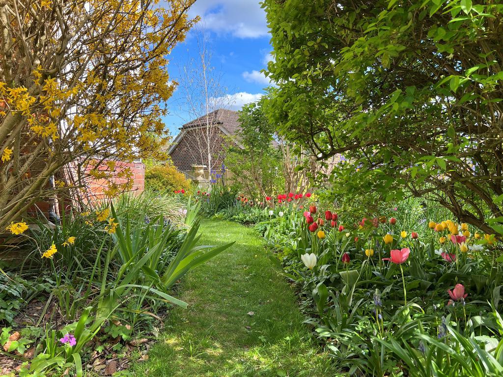 Outside - The generous gardens are on three sides of the property. Stocked with a wide variety of flowering plants and shrubs. Areas of lawn. Paved section adjoining the property. Aluminium-framed greenhouse. Timber garden shed and potting shed. Outside tap. From the garden there are views over rooftops to the skyline of the South Downs.